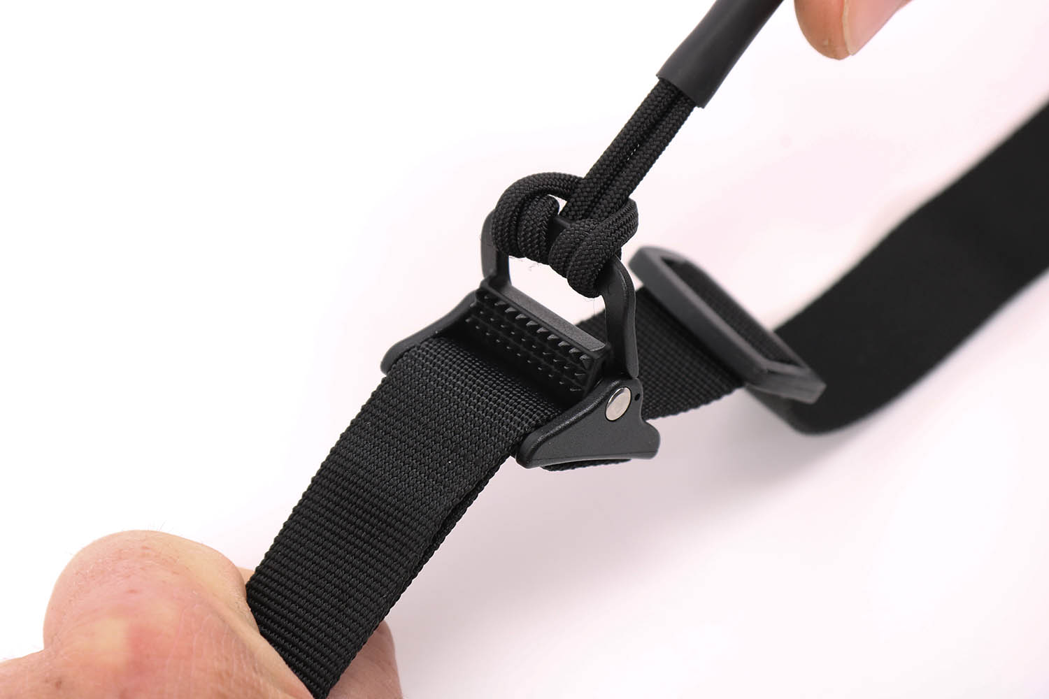 Diese Kombination sorgt für zusätzliche Sicherheit, denn bequemes, ermüdungsfreies und vor allem rutschsicheres Tragen der Waffen ist gerade in schwierigem Gelände ein entscheidender Sicherheitsfaktor. Über die mitlaufende Kunststoffschnalle mit ihrem robusten Zugband lässt sich der Gurt im Handumdrehen für unterschiedliche Tragearten einstellen bzw. am Körper festziehen. So sitzt die Waffe in jedem Gelände und bei jeder Bewegung immer richtig, egal was sonst noch an Kleidung oder Ausrüstung am Mann getragen wird. Die Längenverstellung geschieht im Übrigen nahezu geräuschlos, was natürlich besonders beim Tragen von Jagdwaffen entscheidend ist.