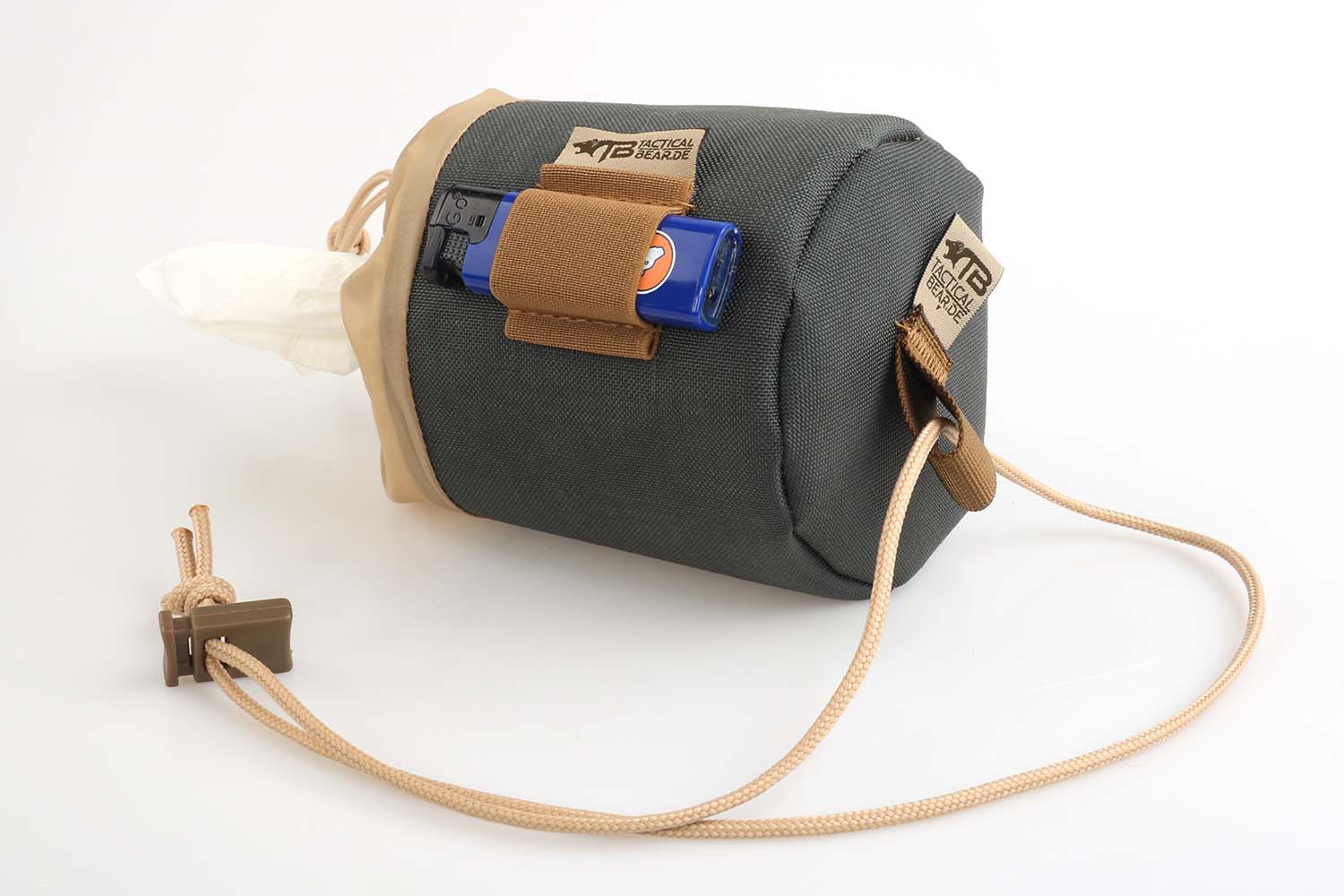 Taktische Tipps für den Outdoor-Einsatz: Bei „großen Geschäften“ im Freien gilt die Regel, Klopapier immer zu vergraben oder zu verbrennen, sofern keine Brandgefahr besteht. Für die Entsorgungsvariante mit Verbrennung finden Sie außen an der Tasche immer Platz für ein Feuerzeug oder Streichhölzer.