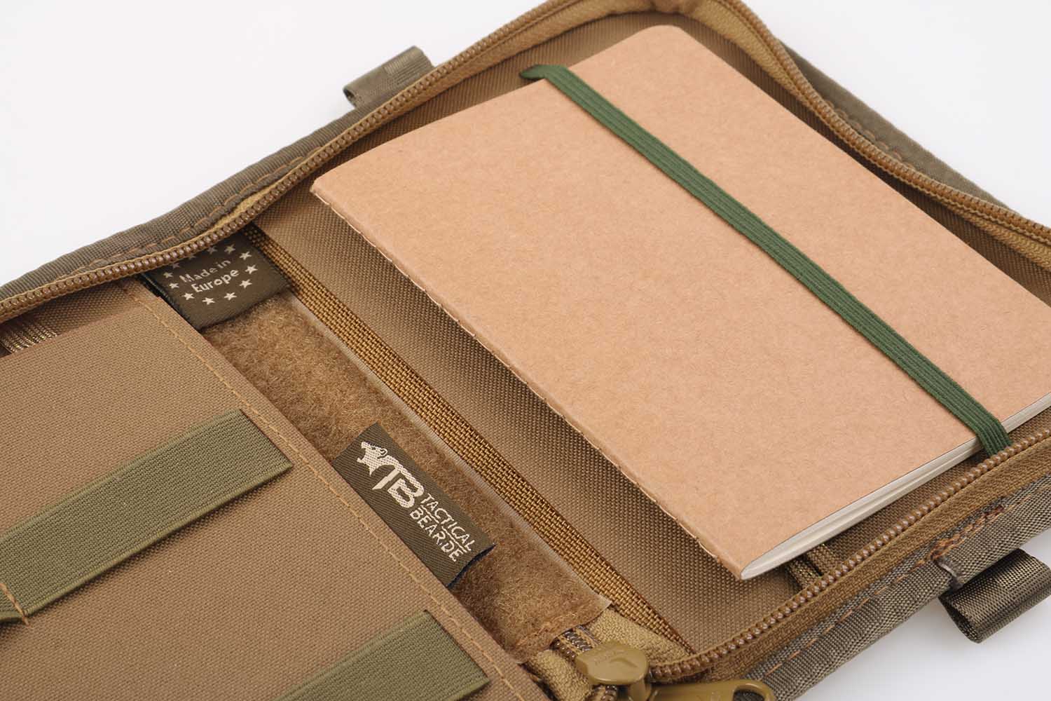 Diese handliche und robuste Dokumentenmappe aus wahlweise 500D Cordura oder CORLODA® Laminat ist der perfekte Aufbewahrungsort für Dokumente, Ausweise, Kreditkarten, Notizbücher, Geld und andere Kleinutensilien, die beim taktischen Einsatz oder der Jagd dabei sein sollten.